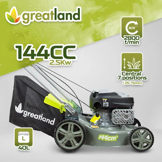 Cette tondeuse thermique tractée 144 CC de la marque Greatland est légère, maniable et donc très simple d’utilisation. Elle convient pour tous types de terrains d’une surface conseillée de 600m².