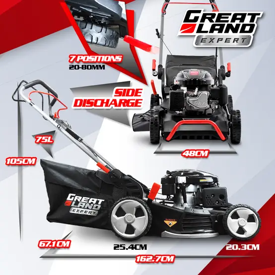 - Facilité d’utilisation : Réglage rapide de la hauteur de coupe, guidon ergonomique et bac de ramassage pratique avec indicateur de remplissage.